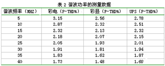 表2为彩电,彩显,和UPS电源输出端口的谐波功率的测量数据(基波分量的功率值看成100%,其余的数据为占基波分量百分比)。P-THD表示各次谐波功率的谐波含量。