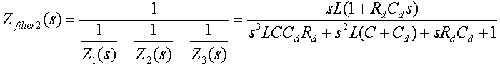 滤波器的输出阻抗可根据三个并联的方框阻抗来计算: