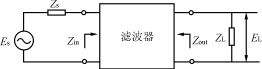 EMI滤波器是具有互易性的,即把负载接在电源端还是负载端均可。在实际应用中,为达到有效抑制EMI信号的目的,必须根据滤波器两端将要连接的EMI信号源阻抗和负载阻抗来选择该滤波器的网络结构和参数。当EMI滤波器两端阻抗都处于失配状态时,即图5中Zs≠Zin、ZL≠Zout时,EMI信号会在其输入和输出端产生反射,增加对EMI信号的衰减。其信号的衰减A与反射Γ的关系为: