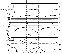 (Lm>>Lr) (1) ⑦ t6~t7:t6时刻S零电压ZVS开通,随着iLr上升,i2逐渐下降,t7时刻iLr已上升到磁化电流iLm值,i2=0,D反偏,u1由-Uo(N1/N2)变为Ui,随后Lm和Lr再次线性充电,新的PWM开关周期又开始了。