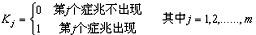 令K=(K1,K2,……,Km)为特征向量,当已经知道存在第j个故障时,哪些症兆出现,哪些不出现,即已经知道