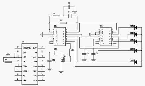 由于UC3846为双端输出脉宽调制器,故其A、B端的工作频率为振荡器振荡频率的一半。根据设计要求,可取3.579545MHz的晶振,则经32分频后得111.8KHz。C18取4.7nF,将其与UC3846的振荡电容C14并联,与振荡电阻Rt一起产生振荡频率。取C14为100pF,Rt取3.65k ,可得振荡频率