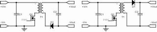 用PMOSFET和MOSFET替代图1中的萧特基二极管,可以实现同步整流的4种电路结构如图2和图3