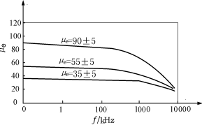 列如1J79,1J851系列,μo≥5×104。在选择金属磁性材料时必须注意频响问题(见图3)1J79或1J851系列的磁心μo随频率上升而下降的幅度比较大,越薄的材料,μo随频率下降的幅度比较小,设计时应注意这一点。