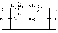 如图2,为基本的Buck变换器,因二极管的单向导电性,该变换器只能单向流动能量。将其中限制能量双向流动的二极管换成电流可以双向流动的功率开关(如MOS管),即可构成能量双向流动的DC/DC变换器—Buck-Boost双向变换器(如图3)。这种演化方法可应用到其它五种基本的不隔离DC-DC变换器Boost、Buck/Boost、Cuk、Sepic和 Zeta,从而得到一族双向变换器拓扑。本文主要对基本的双向Buck-Boost变换器进行研究。
