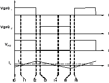 图4 电感电流的三种波形 第I、III两种工作模式分别对应于常规的Buck、Boost变换器,在这两种工作模式下,Q1、Q2均是硬开关,并且由于体二极管的反向恢复问题,引起较大的电流尖峰,容易损坏开关管。文中对这两种工作模式不作详细讨论,下面将具体分析第II种工作模式。