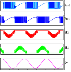 图(5)电感L1和开关管S1的DS两端及输出波形