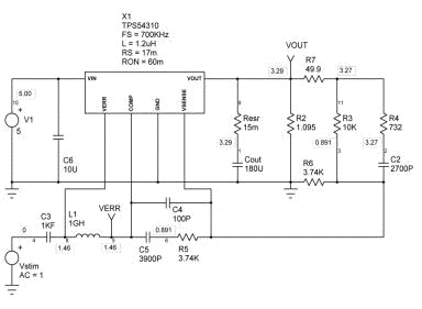 (图12)TPS54310演示板直流和交流小信号仿真电路